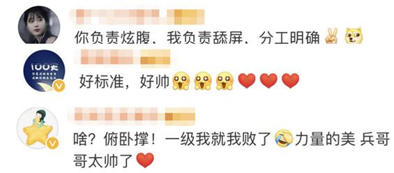 看完这段视频,网友称赞兵哥哥好帅:你负责炫腹,我负责舔屏。↓