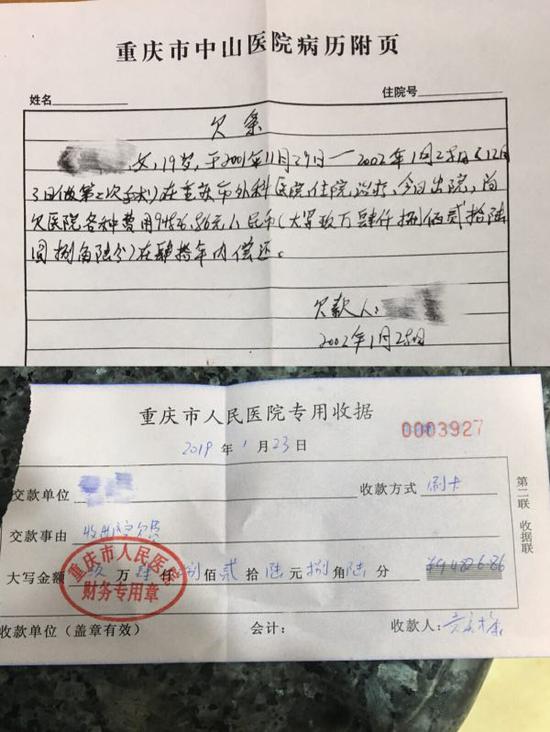 他说,记得她出院时,已欠费近十万元,无可奈何之下,她写下一张欠条,称自己保证在40年内还清,“在我们看来,那张欠条基本上等同于白条,没觉得将来她会还上。”