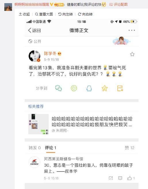 陈学冬准备弃剧夫妻的世界 评论区搞笑留言:切错号了