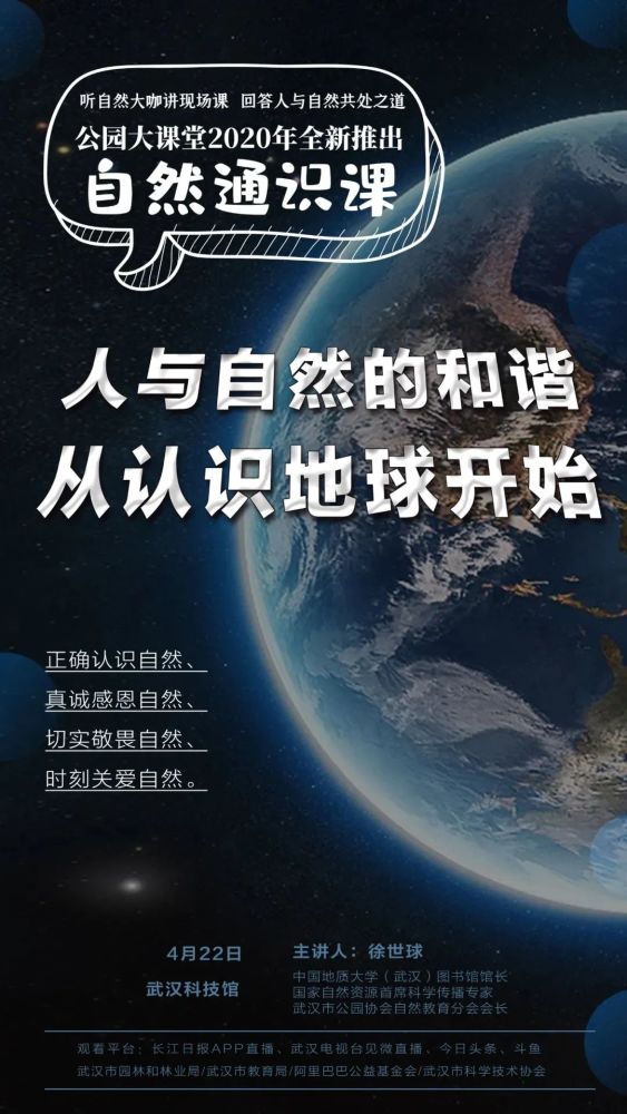 在第51个世界地球日,国家自然资源首席科学传播专家徐世球,给孩子们讲了一趟自然通识课,才知道在茫茫宇宙中,地球原来如此幸运。今天,46亿岁的地球,被交到我们这一代手中,怎么珍惜它保护它,疫情之后,更值得思索。