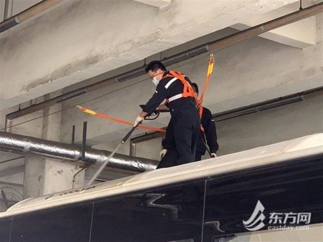 “疫情之下,空调新风等设备的消毒清洁尤为重要。”巴士三公司技术机务部经理王进全说。在巴士三公司内,东方网记者看到工作人员正在对车辆内外滤网进行清洗。