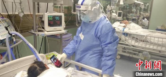 病区一位老太太的老伴在2楼协和病区重症监护室收治,老伴的状况让她焦虑不已、寝食难安。善解人意的医护人员设法帮她录制一段视频发给领队,领队通过几经“周折”让问候视频顺利送到老伴病床前。随后,护士“接龙”录制了老爷爷看视频的实况传回。老太太看到后紧张情绪渐趋平复,开始积极配合治疗。