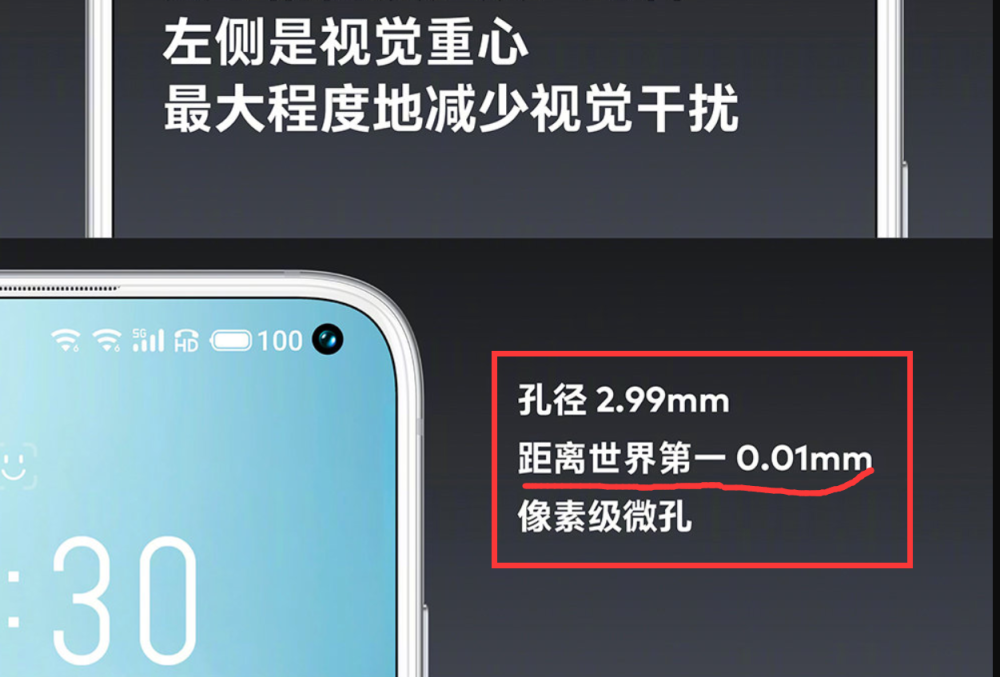 而发布会之后,魅族17的热度也是持续延续,其中就有网友夸赞称“蓝厂之间友好联动”,只因魅族发布会出现了这样一条文案。什么文案呢?原来,昨天魅族高管在发布会上宣传魅族17的正面颜值时,除了宣传下巴的宽度仅3.3mm之外,还非常谦虚的指出魅族17的前置摄像头直径比实际第一小0.01mm。虽然没有指名道姓对比的对象是谁。但是懂行情的网友却扒出了这个对比对象。