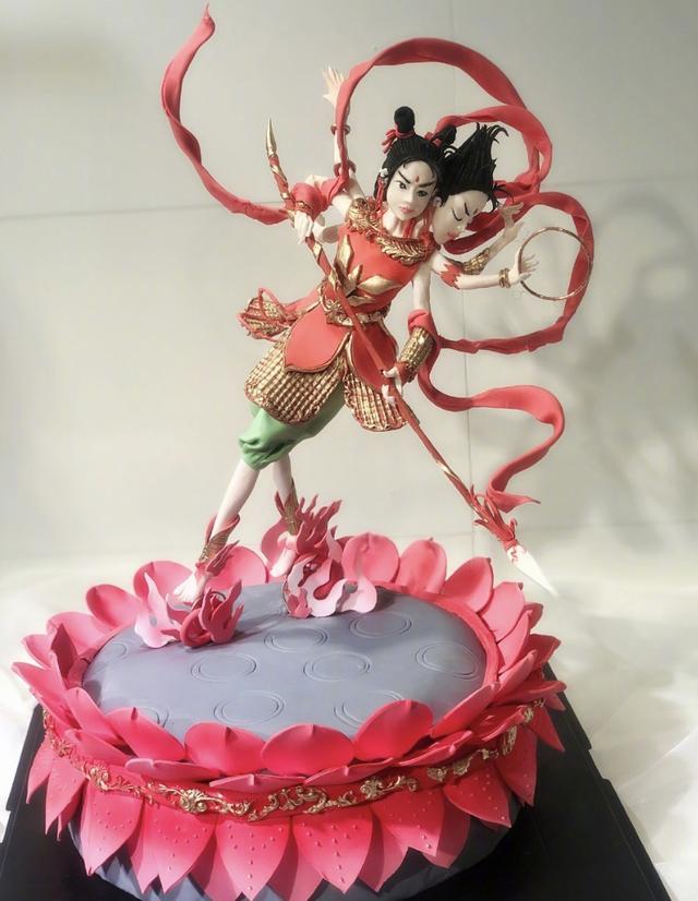 生日会上其中有一个蛋糕也是三头六臂的哪吒形象,真是其创意十足。