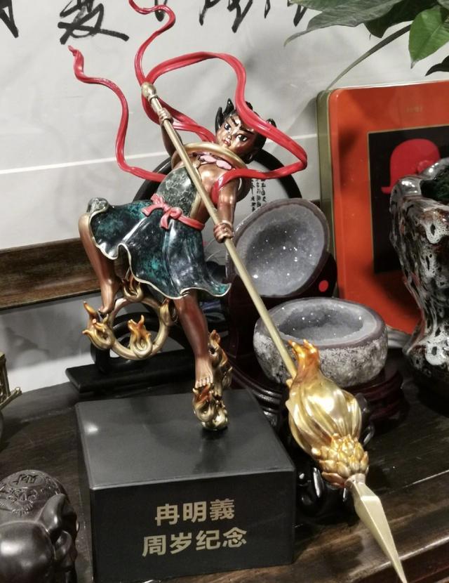 冉莹颖还晒出了一个哪吒踩着风火轮的雕塑,给儿子留作纪念,足以看出冉莹颖的用心。