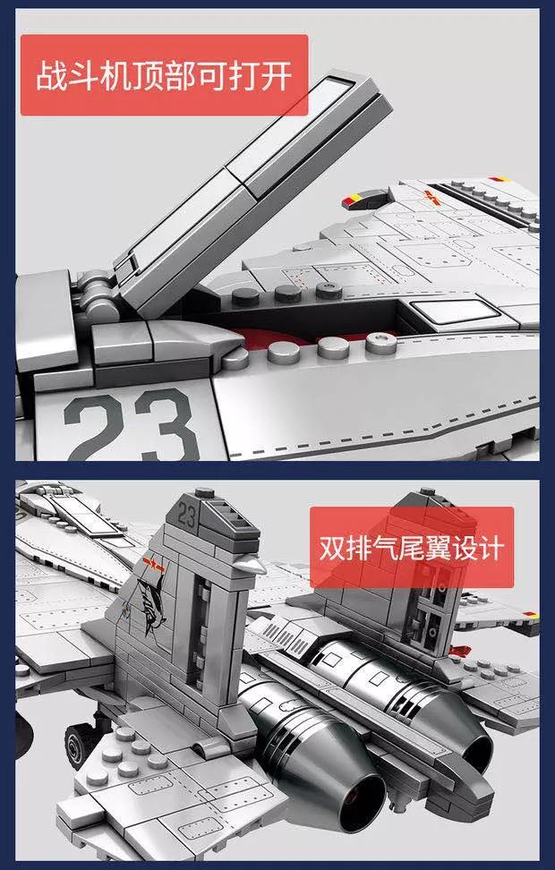 森宝积木正版授权山东舰舰载机歼15战斗机拼装积木军迷收藏模型