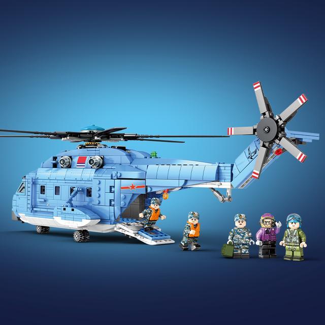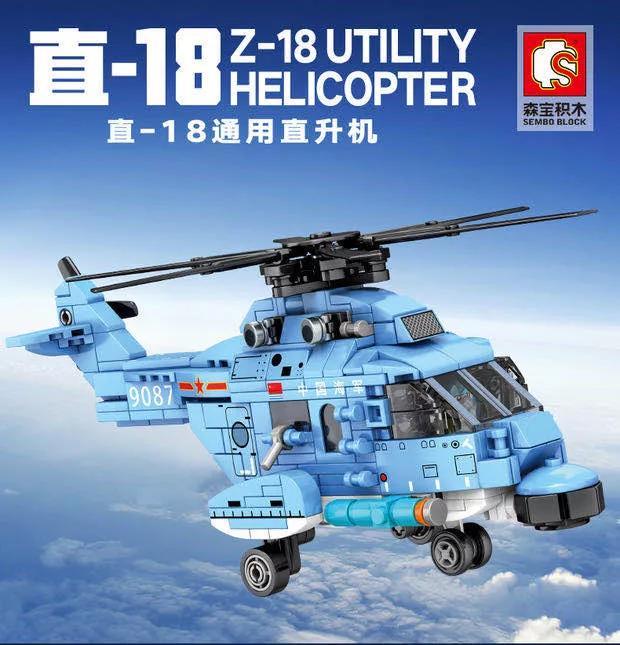 山东舰舰载直18通用直升机积木模型