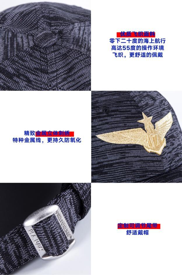 汗带采用全棉面料,佩戴舒适,金属尾扣加针织调节带,更显得刚柔并进的民族特质。内部帽钮和双针带都有山东舰标识,帽眉下方镭射贴纸,配有山东舰吊牌,防伪标。淘宝上山寨很多,大家擦亮眼睛