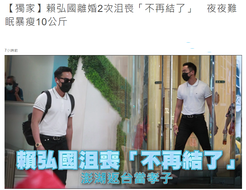 赖弘国在和阿娇离婚之后,状态很不好,据赖弘国的朋友称,赖弘国去年和好友一起开了一家医美诊所,阿娇没有资助他,他自己的经济压力也很大,一下子暴瘦20斤,现在还碰上离婚的事情,夜夜难眠,日常除了看诊,什么都不想做了。