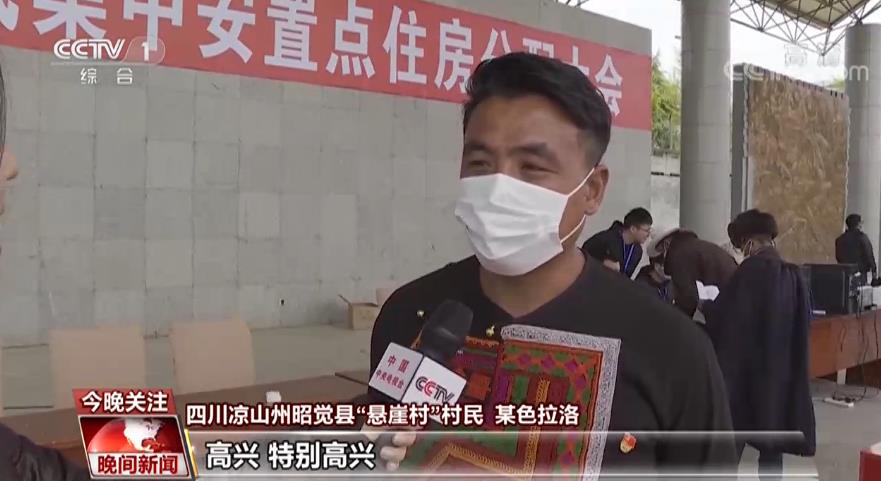 悬崖村村民 某色拉洛:我昨天从悬崖村过来,高兴、特别高兴!(今天)抽到一个好的房子,住到县城,娃儿读书方便、老人方便、看病方便,什么都方便了。感谢政府!住到县城以后,孩子就好好读书,我们年轻人出去打工好好挣钱,日子过得好。