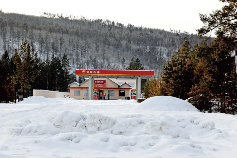 就在这里,有一座全中国位置最北的加油站,中国石油北极村加油站,只听这个名字就知道有多么远,这是大兴安岭漠河西南向、东向400公里区域内唯一的一座加油站。每到冬天,来看极光的游客,都对这个站啧啧称奇。加油站被冰雪覆盖,房檐下、窗户边凝着厚厚的冰凌,有人管他叫“水晶宫”加油站。