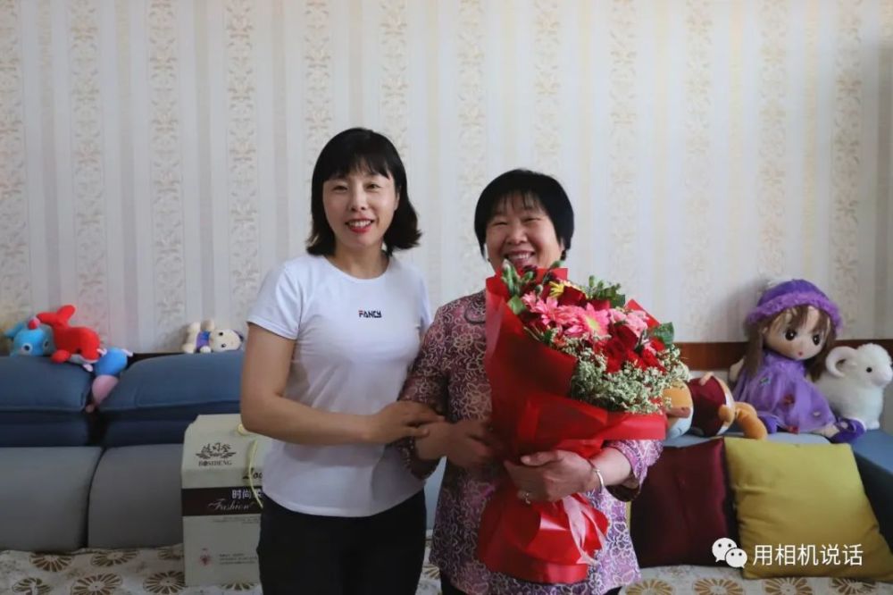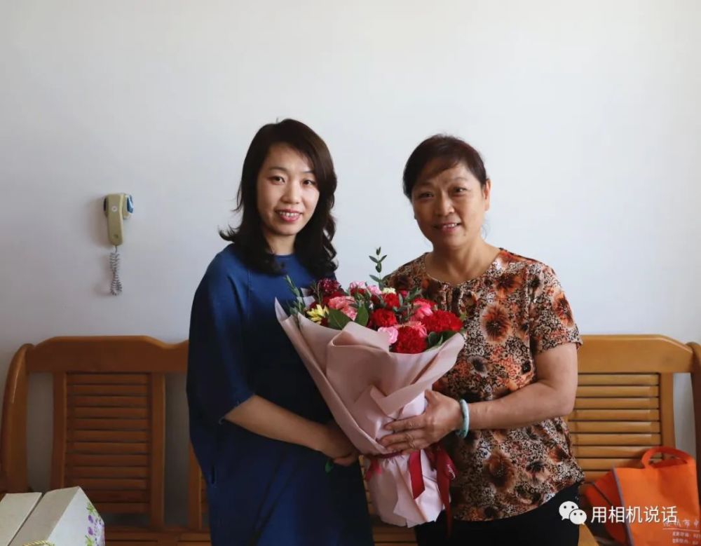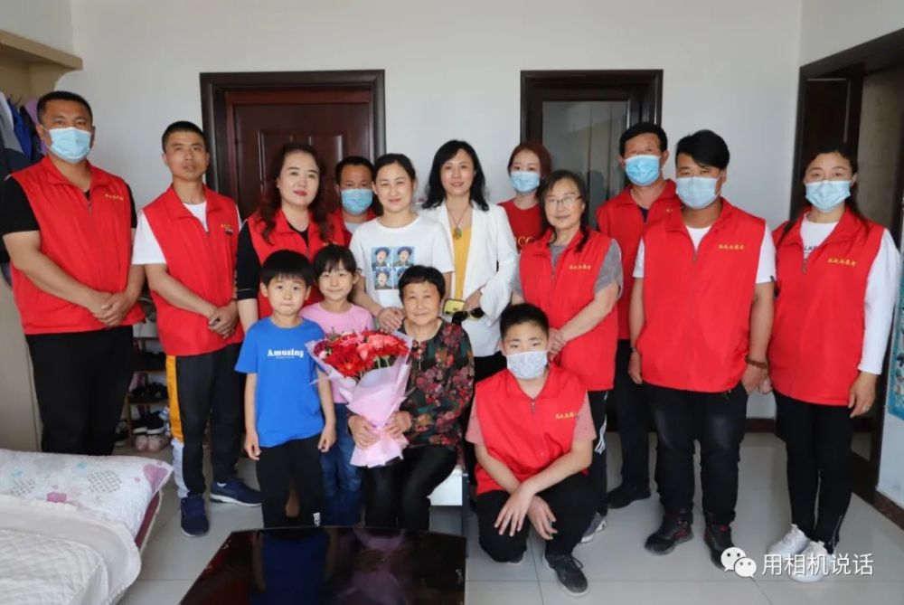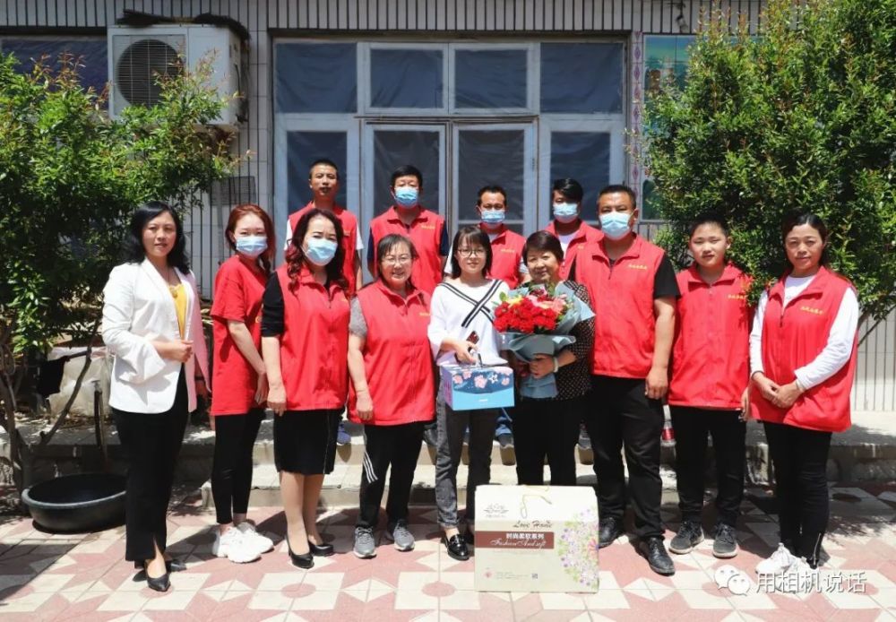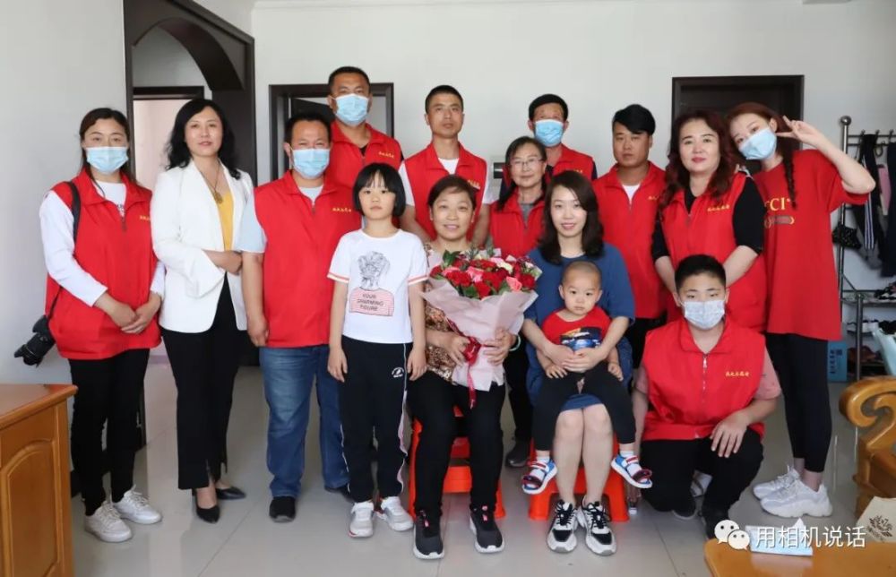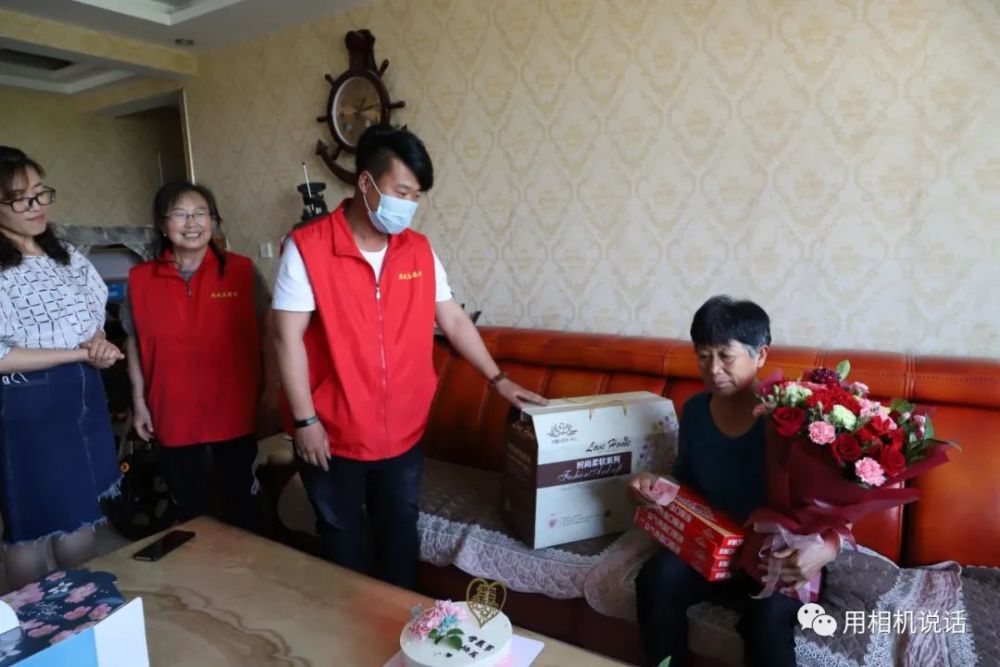 第一站,志愿者们来到薛俊青家。薛俊青是盐山县人民医院内四科副护士长,外表柔弱的她,用并不强壮的臂膀撑起了患者心中的“艳阳天”。在武汉江岸方舱医院,让她面对困难艰险时更加坚韧和刚强。会长杨凤利见到秀气俊俏的薛俊青,一边来了个大大的拥抱,一边说:“终于能抱抱你了,你们是最棒的!”志愿者们为薛俊青和她婆婆递上鲜花等礼物,祝她们节日快乐。薛俊青也把一个写有祝福语的大蛋糕送给了婆婆,祝愿母亲节日快乐,一生幸福,一世如意!
