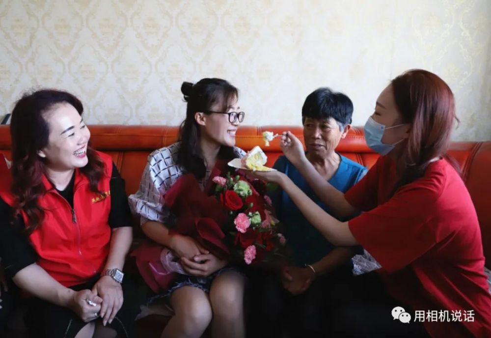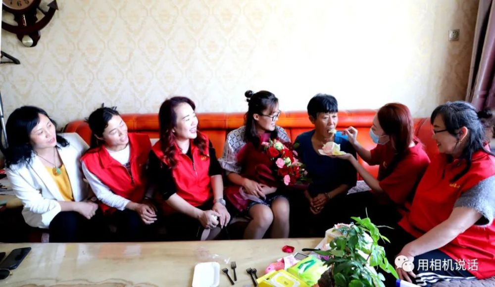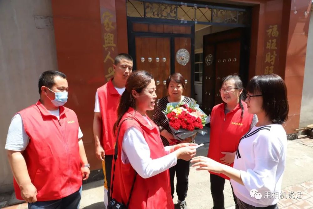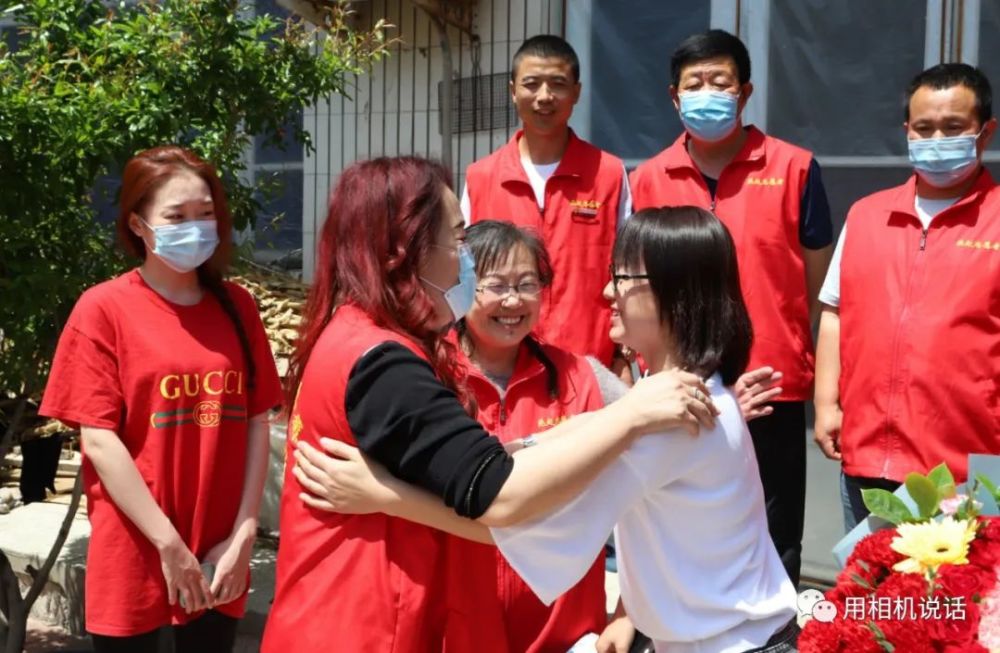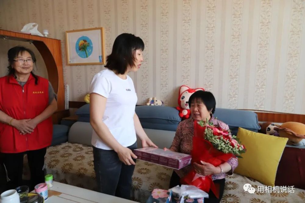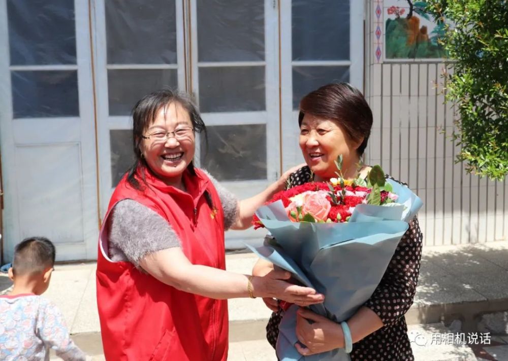 第一站,志愿者们来到薛俊青家。薛俊青是盐山县人民医院内四科副护士长,外表柔弱的她,用并不强壮的臂膀撑起了患者心中的“艳阳天”。在武汉江岸方舱医院,让她面对困难艰险时更加坚韧和刚强。会长杨凤利见到秀气俊俏的薛俊青,一边来了个大大的拥抱,一边说:“终于能抱抱你了,你们是最棒的!”志愿者们为薛俊青和她婆婆递上鲜花等礼物,祝她们节日快乐。薛俊青也把一个写有祝福语的大蛋糕送给了婆婆,祝愿母亲节日快乐,一生幸福,一世如意!