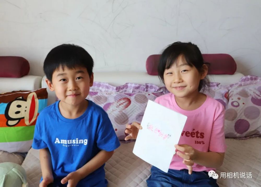 杜香香8岁的女儿和6岁的儿子,也给妈妈精心准备了祝福卡片。