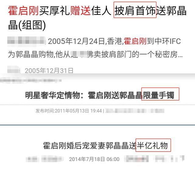 当年经常会有报道说霍启刚又送了郭晶晶各种各类贵重的礼物。