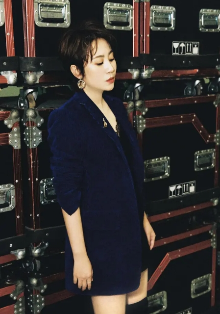 西装在职场穿搭的时候通常会比较保守和拘谨,而在时尚场合穿搭的时候西装可以通过不同的搭配方式呈现出完全不同的风格特点,比如马丽这款西装上衣在版型的设计上加宽加长,通过西装上衣的方式营造出下衣失踪的穿搭方式,将一双美腿线条呈现的十分极致。对于腿部线条纤细又匀称的女生来讲,这种穿搭方式比套装的搭配不知道要高级多少倍。