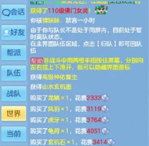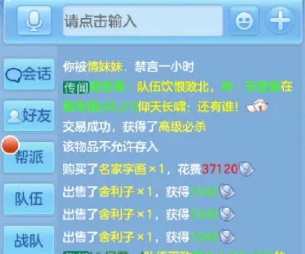 比如说下面这位小伙伴,先是用一张山水挖出了高级神佑复生,这个消息发送到帮派,损友们自然是受到了刺激,立马以禁言一个小时招呼。可是还没过去一分钟,这位小伙伴就立马又用字画获得了更值钱的高级必杀,当然了,随之而来的又是禁言一个小时,怎么说呢?要是吉祥拥有这个权限,很想再加上几个小时,免得接下来他又刺激人。
