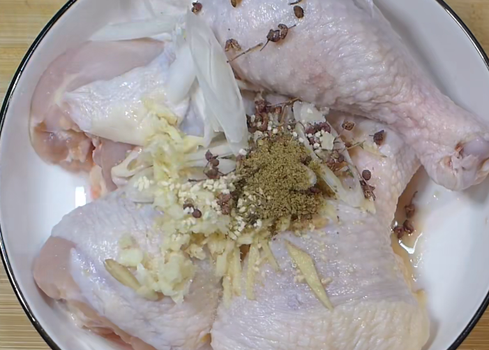 :大鸡腿4-6个,葱姜蒜末少许,花椒若干。