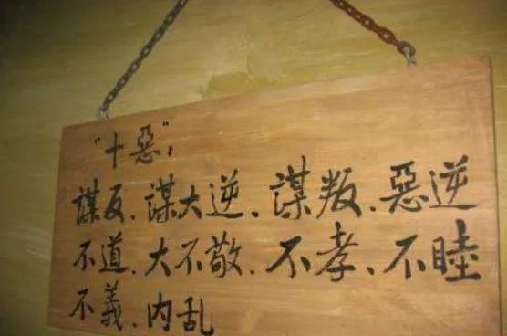 我们经常用到成语“十恶不赦”,“十恶”源自《北齐律》的“重罪十条”,即危及封建国家根本利益的十条最严重的罪名,其中包括“恶逆”(殴打、谋杀祖父母、父母等尊亲属)和“不孝”(诅骂祖父母、父母,不供养祖父母、父母及违反服制的行为)。