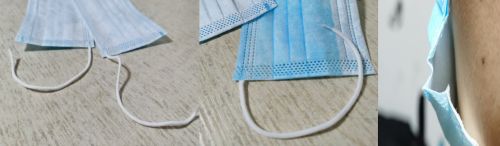 刘阳向财经网展示了一张佩戴口罩的图片,图片显示面颊处因为没有系带而崩开,显得不太贴合,无法形成正常防护。