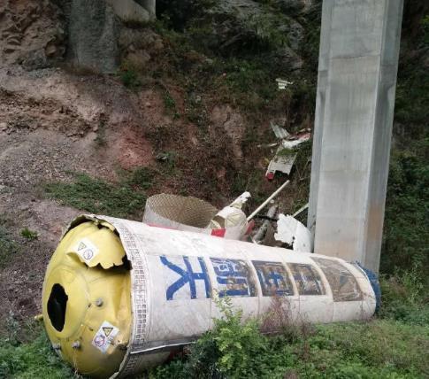 据陕西电视台第一新闻栏目报道,4月30日消息,当天上午7时左右,陕西商洛山阳县延坪镇、漫川关镇群众被一声巨响惊醒,紧接着有人看到上空有一个物体飘落下来。之后群众发现疑似一枚火箭残骸发动机掉落在草丛中,碎片掉落在福银高速上,残骸上标注有中国航天字样,高速路有交警在紧急处置。
