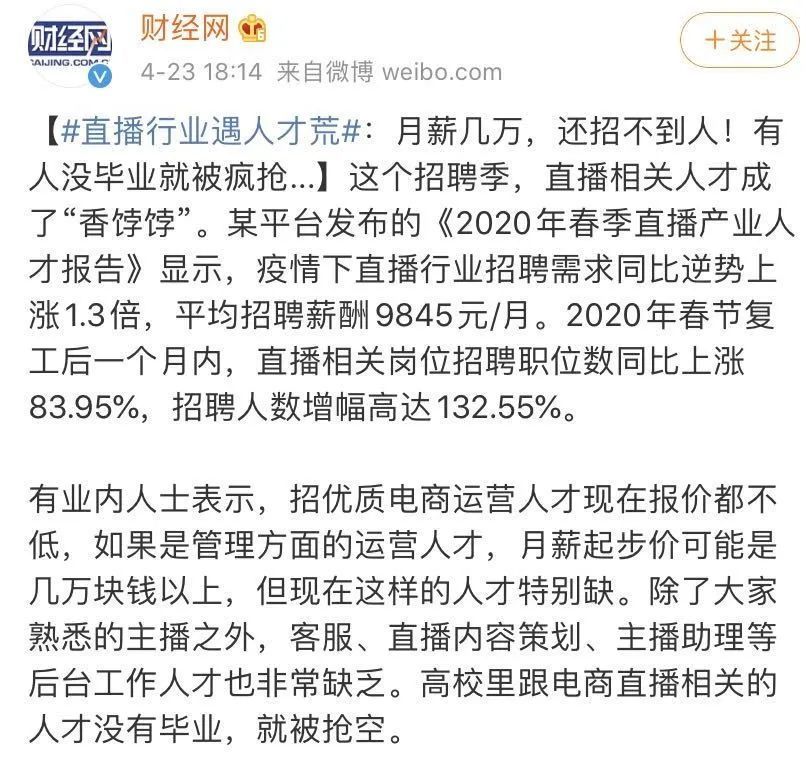 薪资涨得最快的,是新媒体传媒行业的直播!