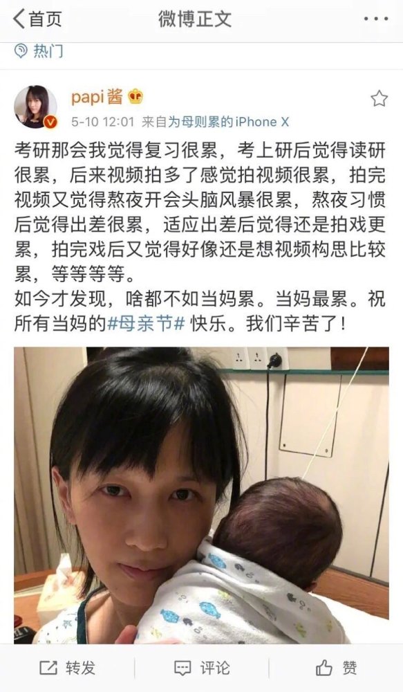 最近,papi酱在微博放出一张与孩子的合照,祝福母亲节日快乐,结果被部分网友嘲讽“独立女性的孩子随父姓很不女权”。结果papi酱把#换成了如何说话不被人挑刺。