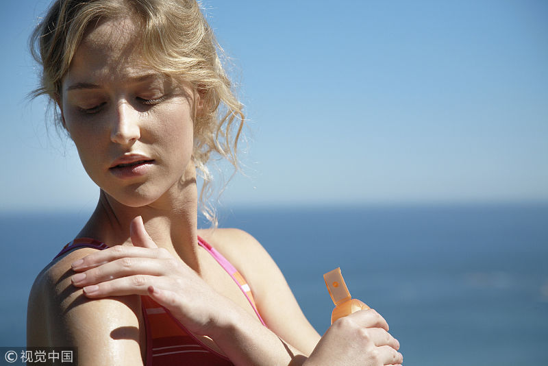 如果是平时早上外出,太阳不是特别大,可以使用SPF值15,或者PA值1个加号的防晒霜;如果是正中午时间,太阳很大,建议选择SPF值30,PA两个加号的防晒霜;如果是在海边,可以选择SPF值50,PA三个加号的防晒霜。涂抹防晒霜时还要注意,经过一段时间后还有补涂,一般2~3个小时补涂一次防晒霜。
