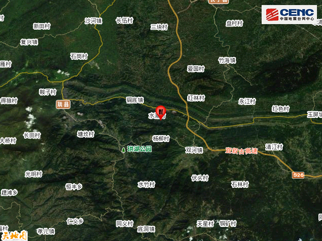 附近村镇:本次地震周边5公里内的村庄有燕子岩、水潮村、田坝头、打虎坝、龙蟠溪、龙桐咀、大地、坎上、窑子坡、海子弯,20公里内的乡镇有硐底镇、铜锣镇、双河镇、龙头镇、珙泉镇、巡场镇、花滩镇、沙河镇、竹海镇、井江镇。