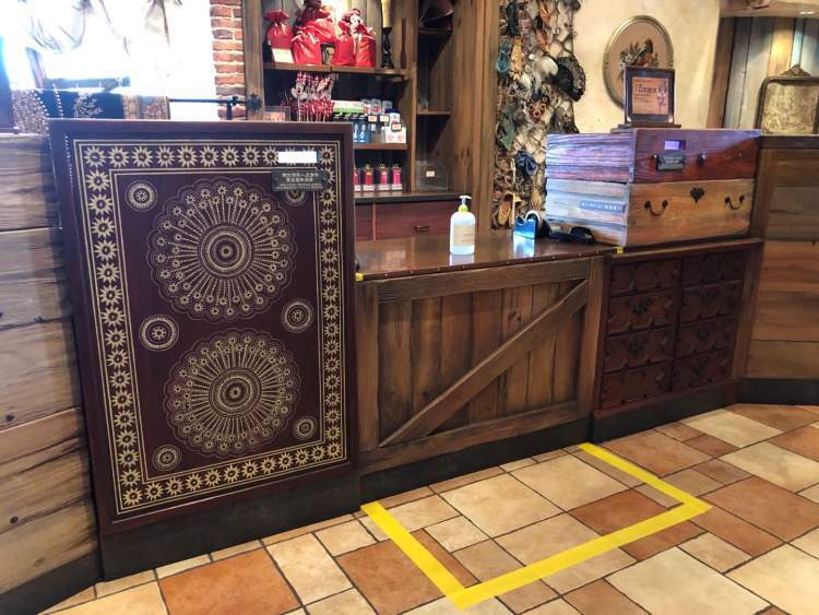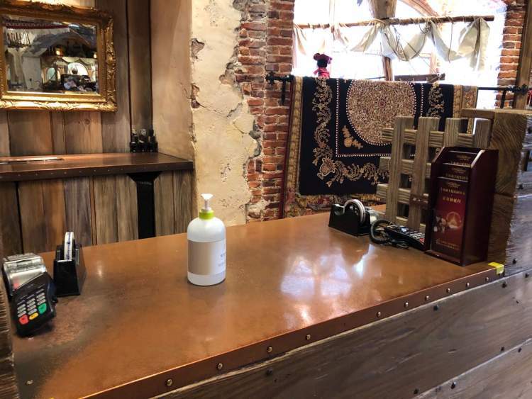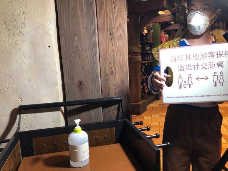 另一个细节是,在景点出口、餐厅入口、收银台等处,都配备了免洗洗手液,希望游客勤洗手,保持卫生。