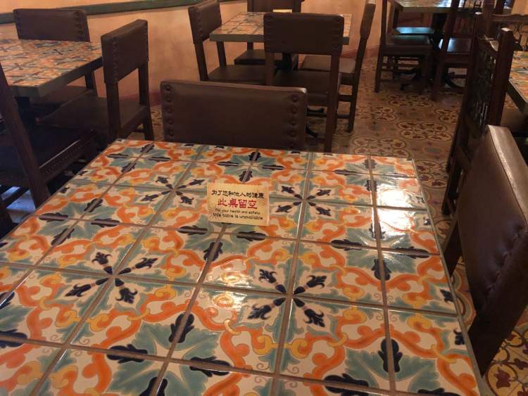 此外,凡桌面上有“此桌留空”台卡的餐桌不得就餐,以保持彼此之间的距离。