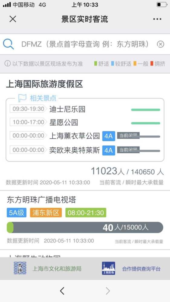 上午10点,记者在小飞象等热门景点看到,游客一点不多,排队仅十多人,个别时段甚至还没有人排队。上海迪士尼度假区官方App显示,各景点等候时间均在5-10分钟左右。上海发布景区实时客流查询显示,上海国际旅游度假区当前游客为1万多人次,游园舒适度较高。