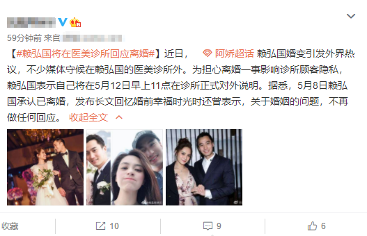 本来这件事应该随着双方“闭麦”正式画上句号,但是赖弘国显然还不想结束,5月11日,赖国弘再次对外表示,将会再次对于两人的婚变正式说明。