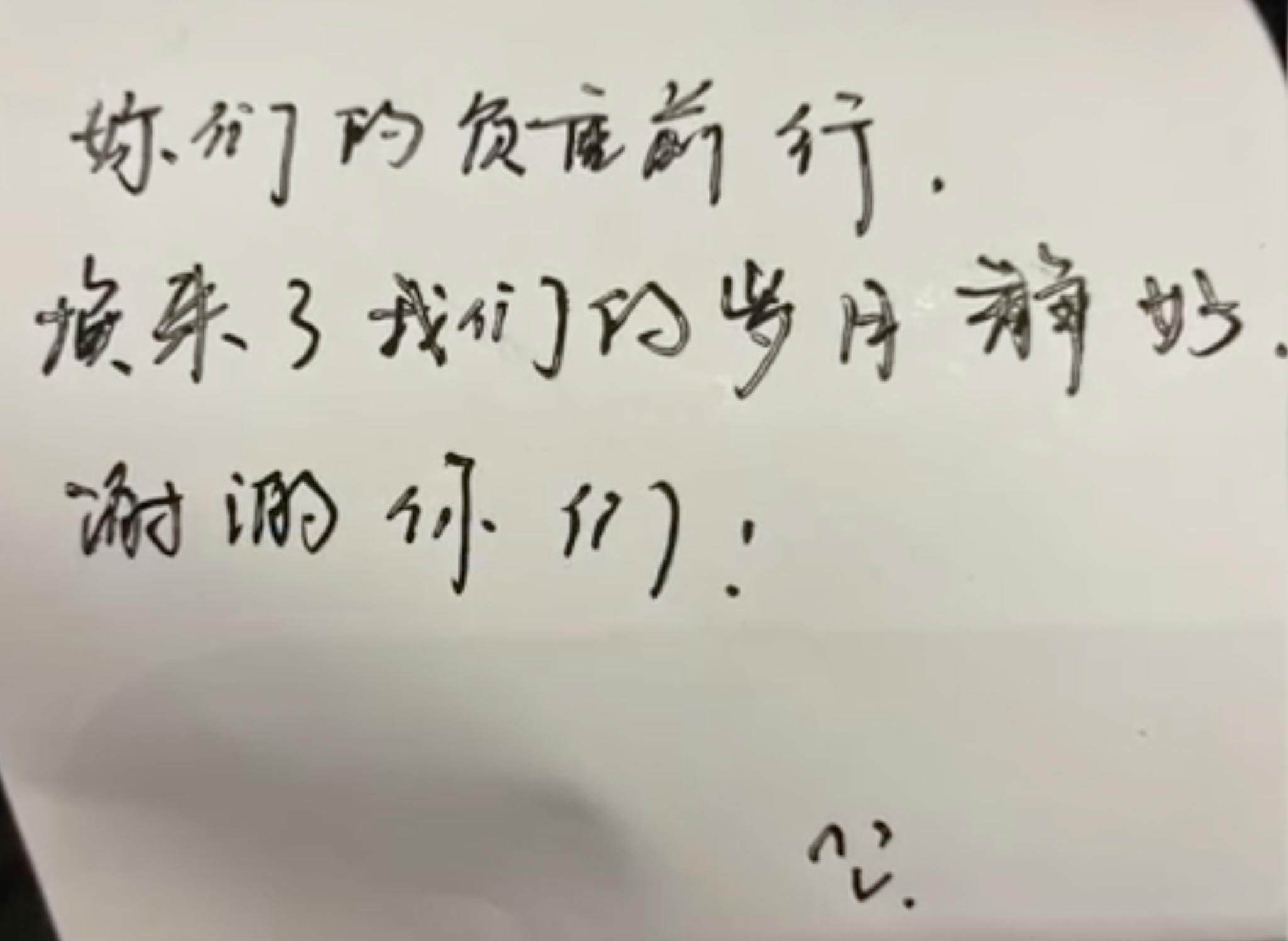 因为不想打扰,就随手在收据上写下留言。她说,“当时只是发自本心,没有想太多。第一次看到逆行英雄出现在离我那么近的地方,就想表达一下敬意。”