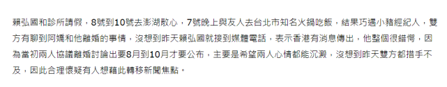 诊所的回复打消了网友的疑虑,赖弘国召开记者会的事情也是子虚乌有。尽管两人的婚姻已经尘埃落定走向尽头,但网友们对两人最根本的离婚原因也是十分好奇,网上的各种猜测也是层出不穷。“赖弘国私生活不检点”、“阿娇不爱赖弘国”等消息是此起彼伏,甚至还有知情好友透露两人离婚消息被曝出是罗志祥分散大众视线的阴谋。
