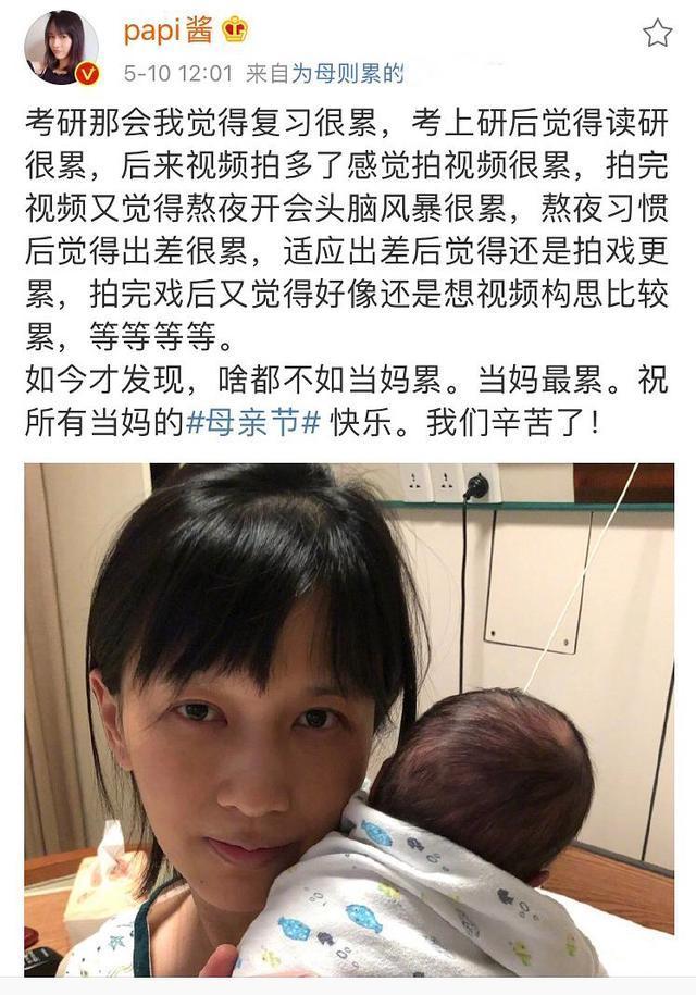 事情的起因是这样的,5月10日母亲节papi酱在社交账号上分享自己带娃的辛苦日常。