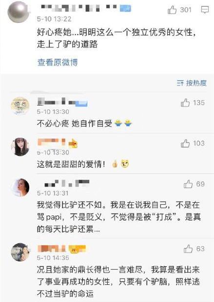 而且此前她表示自己不想生孩子,但是现在转眼不仅生了孩子,而且孩子还是随她丈夫的姓,完全没有为自己的付出争取"随母姓"的女权意识,这样的反转遭到许多网友的嘲讽,觉得她独立女性人设崩塌,更直言吐槽"不必心疼她,是她自作自受"。