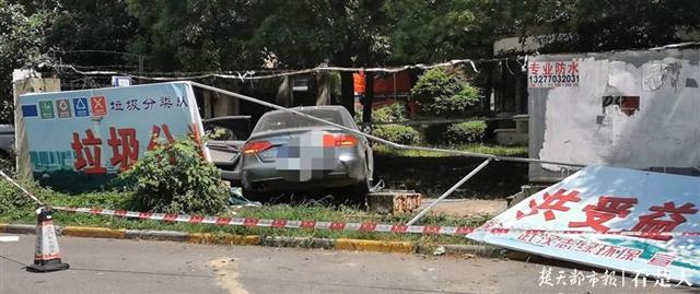 今天下午,楚天都市报记者来到泰然玫瑰湾小区,事故现场已经处理完毕,一排蓝色围挡下,对面小区南湖山庄的24厘米宽的围墙也被撞倒。地面七零八落,还残留着一只黑色男鞋。