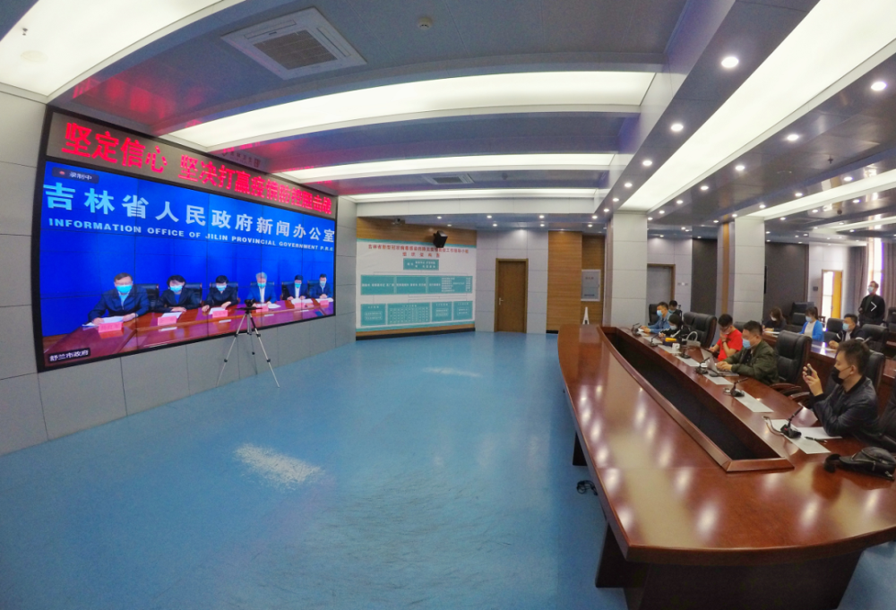 今天,省政府新闻办在舒兰市召开视频新闻发布会,省政府副秘书长、省疫情防控工作指导组组长高材林介绍了舒兰市疫情防控工作情况。鉴于舒兰市属于高风险地区,不宜聚集记者进行现场采访,采取记者在分会场通过视频连线的方式参加发布会。