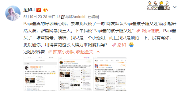 papi酱也从来没说过想让孩子随她姓,怎么就让网友沸腾了?