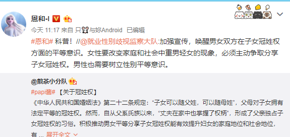 随意从取名便认为她的独立女性人设是假的,这简直是疯求了!随母姓怎么就和独立划上等号了?