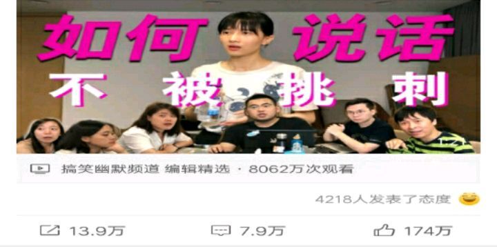 再说papi酱置顶的那个微博视频,内容大概就是papi酱首先跟4位同事说公司前台小姑娘今天穿穿的西装很好看,然后4位同事就开始用诡辩刁难papi酱,于是5个人陷入诡辩的怪圈。而这个视频观看超过8000万次,点赞量更是超过了170万的恐怖数字。