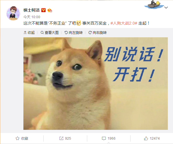 5月11日,当今围棋第一人的柯洁在社交媒体上宣布: