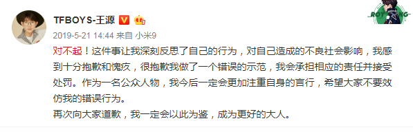 说到“模糊化”道歉,上一代流量明星王源可以算得上是肖战的前辈。