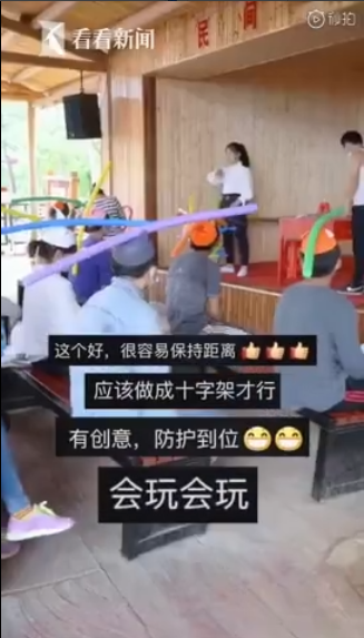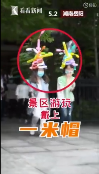 景区发一米帽提醒保持距离