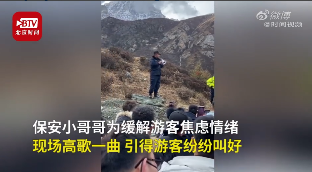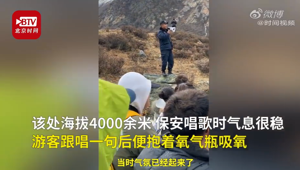 保安4千米海拔放歌安抚游客