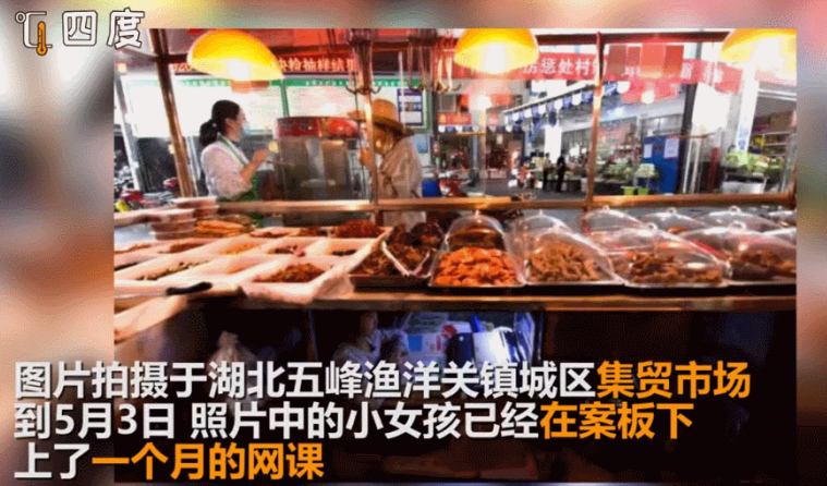 她就一直在卤菜店的案板下上网课,