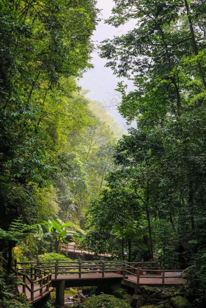 说到活化石,就不得不来桫椤自然保护区,更近距离地接触这份厚重的历史。见证过恐龙生长的万年桫椤,树叶螺旋般伸向天空,树冠茂如巨伞,茎苍叶秀,阳光从中渗进来洒在地上,竟是一片静幽幽的绿,仿佛走进了一座天然氧吧~