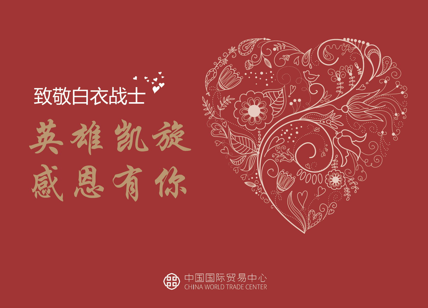 虽然疫情尚未消散, 口罩依然遮挡着我们的面庞,但挡不住这一颗颗感恩的心。白衣战士们迈着统一的步伐勇敢逆行,铸成了一道道坚固的防护金盾,将病毒与我们隔离。这场疫情带来的不仅是考验和磨难,还有坚持、勇敢与温暖。国贸中心坚信,爱和希望终将战胜疫情,一切光景定会繁华依旧!献礼英雄,感恩有你!