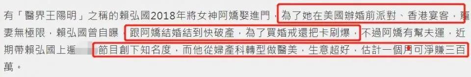 没想到,才过几天就被打脸的措手不及。不过其中原因不少人能品出一二。在5月8日赖弘国承认已离婚后,有关他的负面消息就没有停过。